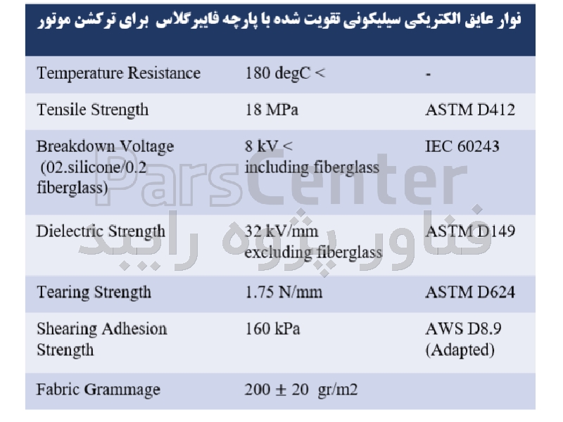 این محصول یک محصول مورد استفاده در عایق بندی ترکشن موتورها، الکتروموتورها ،ترانسفورماتورها و ژنراتورها می باشد . شامل اجزای سیلیکون و فایبرگلاس است و سیلیکون روی فایبرگلاس کلندر شده است.