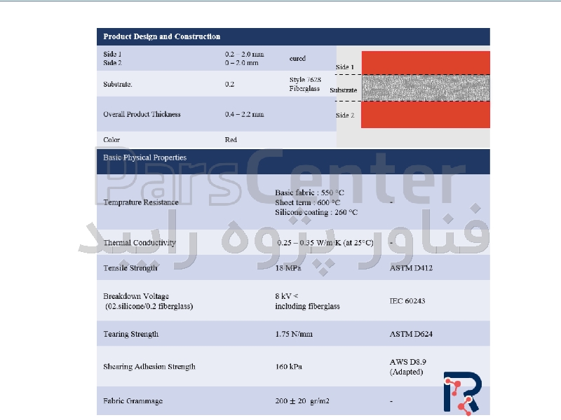 ورق سیلیکونی نسوز با پایه فایبرگلس برند رایبد
