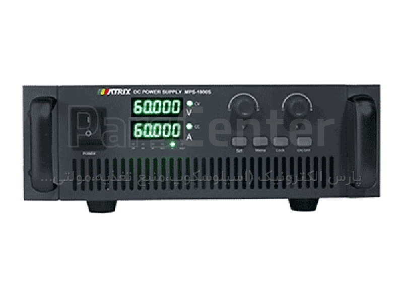 منبع تغذیه 60 ولت 60 آمپر MPS-3600S-60-60، یکی دیگر از انواع منبع تغذیه تولید ماتریکس است. نمایشگر 5 دیجیت با رزولیشن 1mv/1mA از ویژگی های آن است. این منبع تغذیه در برابر اضافه بار، OCT, OTP محافظت شده است.