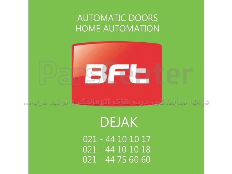 نمایندگی رسمی بی اف تی BFT: خرید مستقیم، ارسال سریع و نصب تخصصی برند بی اف تی BFT یکی از معتبرترین جک پارکینگی، راهبند bft و درب های اتوماتیک در جهان است. خرید از نمایندگی بی اف تی BFT تضمین کننده کیفیت کالا و بهترین قیمت با خدمات پس از فروش و گارانتی اصلی است شماره تماس 02144756060- 02144101017 -
