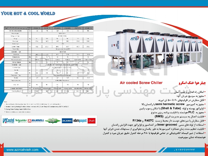 اگر به دنبال بهترین راهکارها برای سیستم گرمایش و سرمایش خود هستید، با ما تماس بگیرید و به کیفیت بی نظیر چیلر تراکمی هواخنک اسکرو و اسکرال برسید.