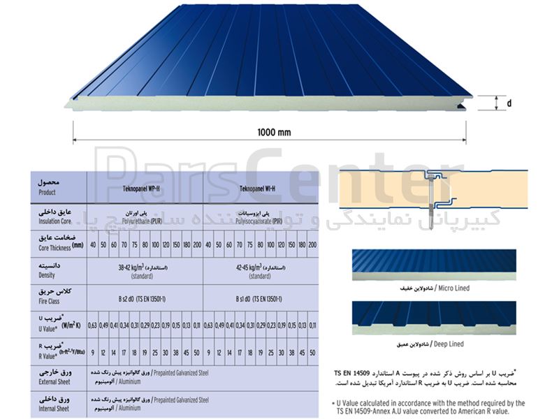 مشخصات فنی ساندویچ پانل کبیر (دارای استاندارد اروپا) :