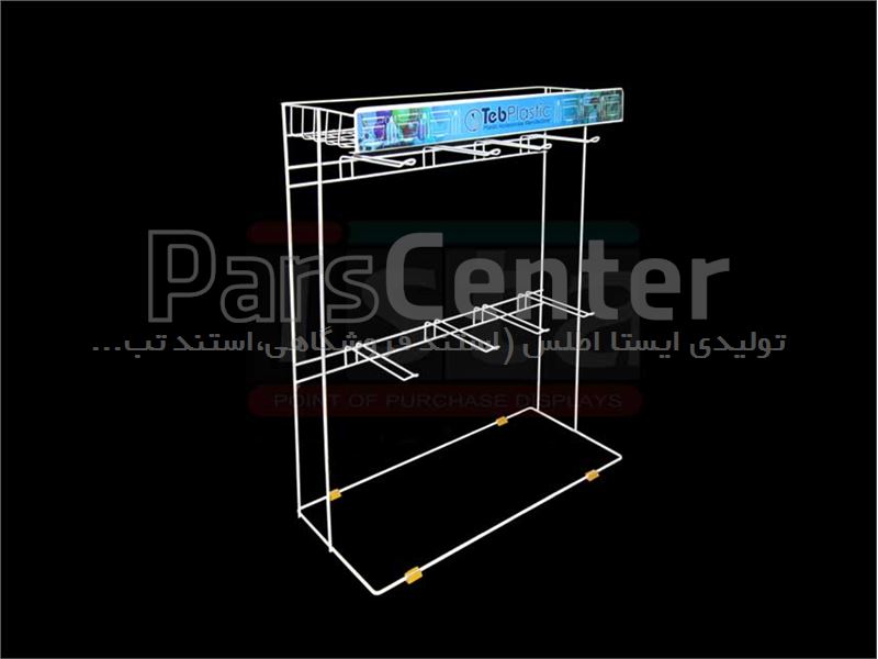 استند فلزی محصول، رومیزی، که به سفارش شرکت طب پلاستیک تولید شده است. این استند فروشگاهی توسط تیم طراحی و ساخت استند در شرکت ایستا اطلس طراحی و تولید شده است. شماره دفتر شرکت ایستا اطلس 22583497-021