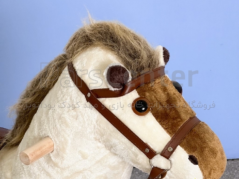 راکر اسب پاندولی جنس : پارچه نیوسافت درجه 1 - پایه ی فلزی با رنگ کوره ای -فریم داخل اسب پر شده با الیاف لایکو-زین و افسار از چرم وارداتی