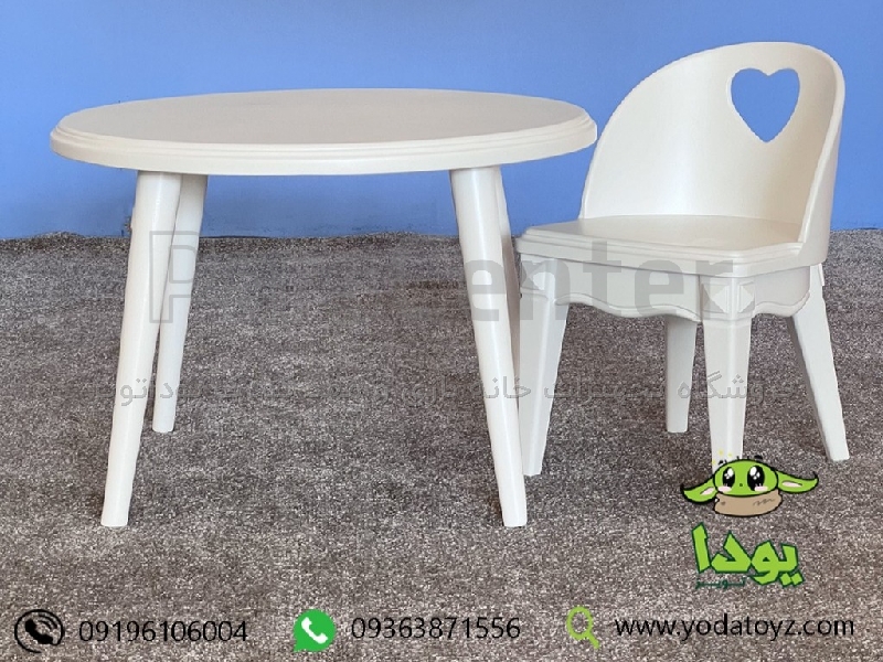 ست میز و صندلی چوبی سفید کودک مدل قلبی برند yoda
