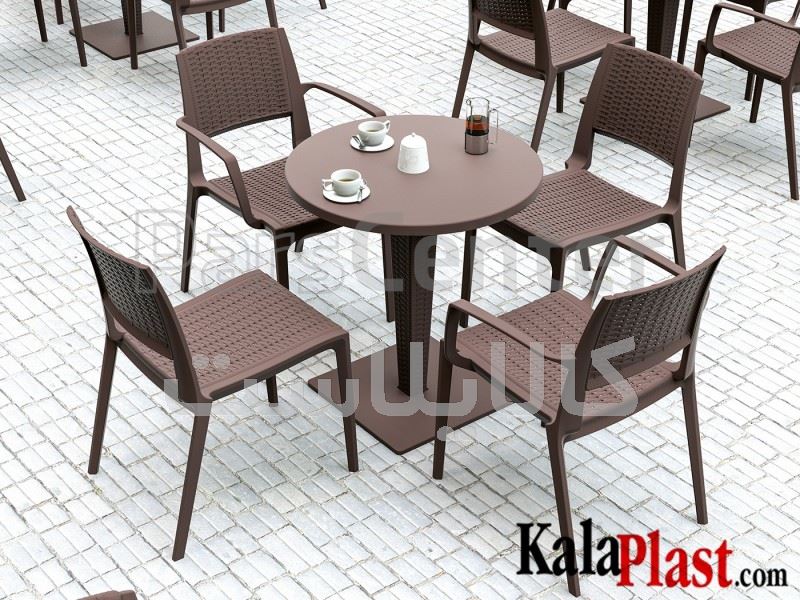 میز 4 نفره گرد تک پایه آلومینیومی حصیری ریوا