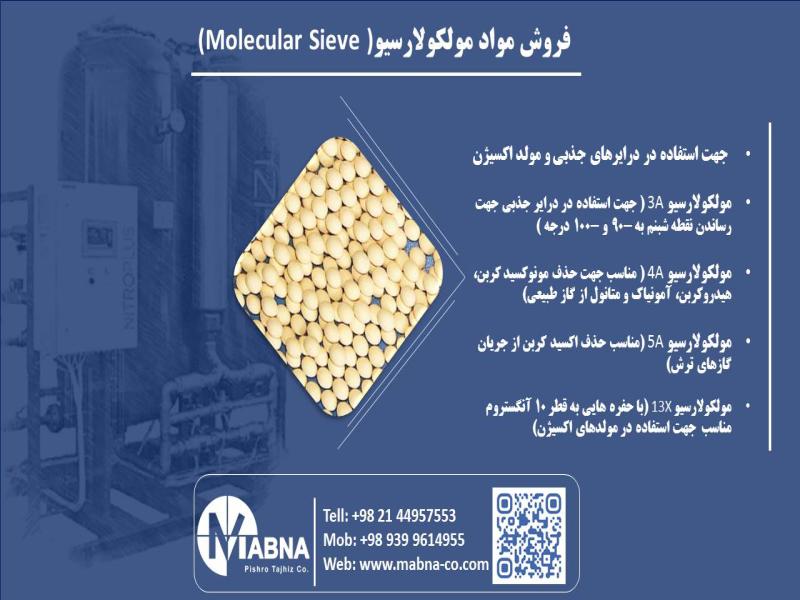 - مواد جاذب مولکولارسیو ( دارای مدل های 3A ، 4A ، 5A و 13X مناسب جهت استفاده در مولدهای اکسیژن و درایرهای جذبی )