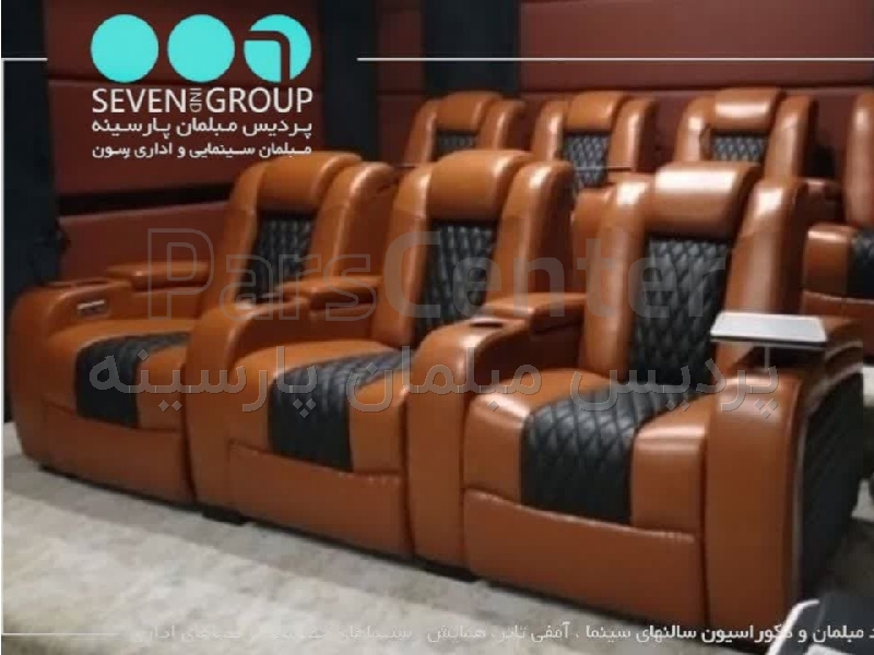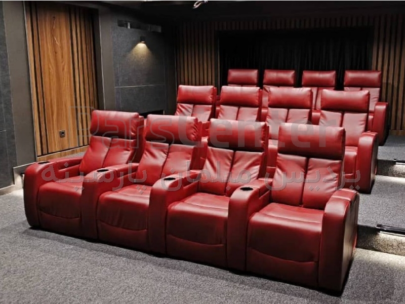 مبل سینمای خصوصی برقی با روکش چرم مصنوعی با طبیعی، به صورت تکی یا ست چند تایی، دارای کنسول با قابلیت های جا لیوانی، میز پذیرایی، جا کفشی، چراغ مطالعه، USB شارژر، شارژر wireless، لاوسیت و...