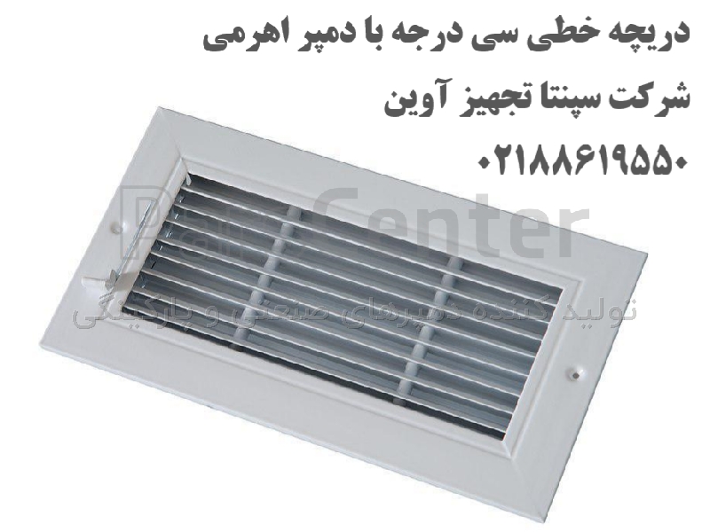 دریچه خطی 30 درجه -دریچه کولری ایرفویلی - دریچه مشبک - دریچه چهارطرفه - دریچه زیرفن کویل با قفل زیمنس و لولا