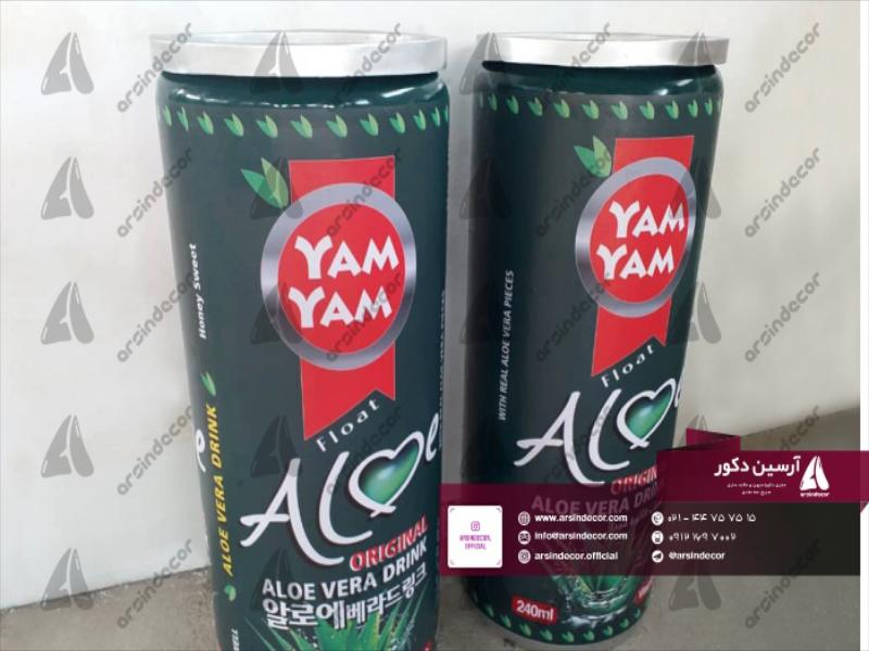 ماکت تبلیغاتی بطری یام یام در تاریخ فروردین ماه ۱۴۰۰ به مدت ۲۵ روز توسط گروه صنعتی آرسین دکور طراحی و ساخته شده است. ماکت های صنعتی و تبلیغاتی بطری YAM YAM به سفارش کارخانه YAM YAM ساخته شده است. در این سازه از متریال فایبرگلاس شش لایه استفاده شده است و ارتفاع سازه ۱۸۰ سانتی متر با وزن ۲۸ کیلوگرم می باشد. رنگ به کار گرفته شده صنعتی و خودرویی و مناسب جهت استفاده در فضای باز و سرپوشیده و مقاوم در برابر اشعه UV و رطوبت می باشد. تمام مراحل مدل سازی و قالبگیری ماکت های صنعتی و تبلیغاتی بطری YAM YAM توسط دستگاه های CNC تمام اتوماتیک با بالاترین دقت انجام گرفته است.