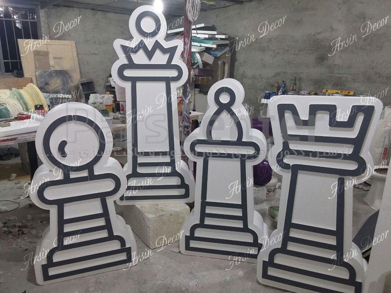 ماکت دو بعدی مهره شطرنج در گروه صنعتی آرسین در مدت زمان یک روز کاری طراحی و ساخته شده است. ابعاد ماکت های شطرنج در حدود یک و نیم متر ارتفاع و ضخامت بیست سانتی متر می باشد. جنس کلیه ماکت های مهره های شطرنج فوم خام می باشد. وزن تقریبی هر یک از مهره های شطرنج کمتر از یک کیلوگرم می باشد.