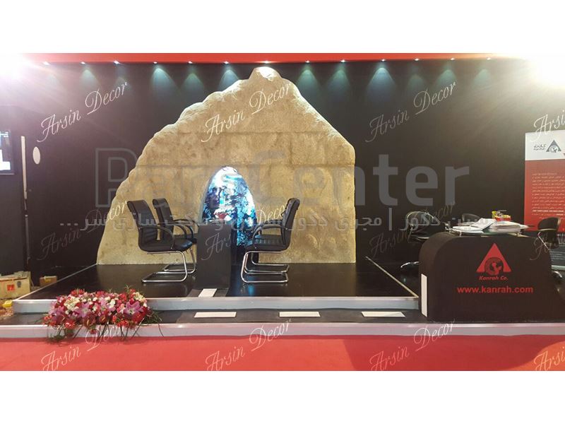 طراحی و ساخت ماکت تبلیغاتی غار و کوه در ابعاد سه متر با متریال فوم با دانسیته بالا جهت دکوراسیون غرفه نمایشگاهی.
