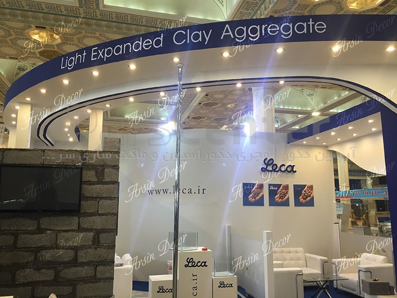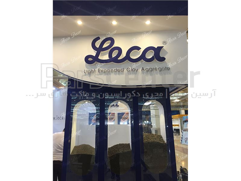دکور غرفه نمایشگاهی لیکا در مجموعه آرسین دکور در مدت زمان ۲ روز انجام شده است. در این غرفه با استفاده از فوم با دانسیته بالا لوگو و نوشته های تبلیغاتی شرکت Leca اجرا شده است. ابعاد هر یک از این لوگوها در حدود ۹۰ سانتی متر می باشد. در کنار استفاده از فوم فشرده در حدود ۲۰ متر استیکر نیز در این پروژه نصب و اجرا شده است. نوعی استیکر خاص(شبیه سمبلاس کردن شیشه) با عرض ۱۲۰ سانتی متر در شیشه های اتاق جلسات غرفه نیز استفاده شده است. این نوع استیکر به مراتب ارزانتر و سرعت اجرای بالاتری در مقابل سمبلاس دارد.