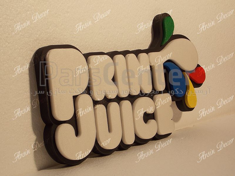 ساخت لوگو تبلیغاتیPrint Juice گروه صنعتی آرسین دکور به عنوان بزرگترین و به روزترین سازنده ماکت های تبلیغاتی آماده ارائه خدمات به شما می باشد. ساخت لوگو تبلیغاتی Print Juice به کمک به روزترین تکنولوژی روز دنیا در آمریکا که در گروه آرسین دکور بومی سازی شده است ((دستگاه CNC شش درجه آزادی ساخت گروه صنعتی آرسین دکور)) طراحی و ساخته شده است.