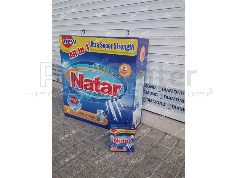 ماکت قرص ماشین ظرفشویی در مجموعه آرسین دکور در مدت زمان سه روز کاری به انجام رسیده است. ابعاد ماکت در حدود یک متر می باشد. وزن تقریبی این پروژه نیز در حدود چهار کیلوگرم می باشد. چاپ به کار گرقته شده در این پروژه برای محیطهای فضای باز(نور خورشید، باران و ….) می باشد. از این نوع ماکت می توان در راستای تاثیرگذاری هرچه بیشتر بر روی بیننده و خریدار کالاهی خود استفاده نمود.