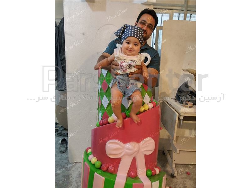 ماکت کیک تولد و عروسی در گروه صنعتی آرسین دکور در مدت زمان چهل و شش روز کاری طراحی، اجرا و نصب شده است. ابعاد و وزن تقریبی هر یک از ماکت های کیک در حدود ۱۷۰ سانتی متر و بیست کیلوگرم می باشد. متریال به کار گرفته شده در این پروژه با توجه به محل نصب که در فضای باز ( رطوبت و نور خورشید و … ) می باشد، فایبرگلاس است. این نوع جنس استحکام و مقاومت بالایی دارد. کلیه ی ماکت های کیک تولد و عروسی به صورت قالبگیری با فایبرگلاس ۱۳۰ ساخته شده اند. این پروژه به سفارش مجموعه قنادی های شرکت ناتلی در راستای دیزاین و دکور شعب خود در استان تهران طراحی و ساخته شده است.