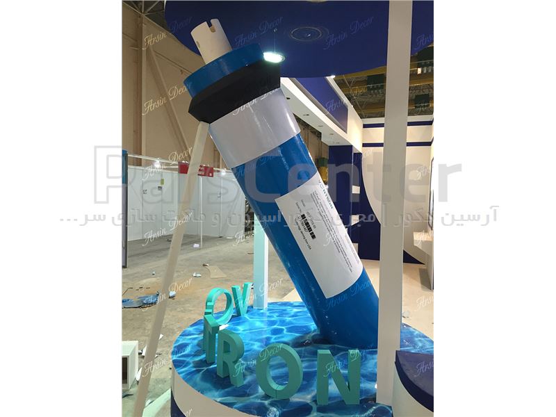 طراحی و ساخت ماکت تبلیغاتی فیلتر آب به ارتفاع دو متر و پنجاه سانتی متر جهت دکوراسیون غرفه نمایشگاهی.