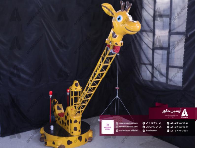 طراحی و ساخت ماکت جرثقیل طرح زرافه طی مدت زمان ۳۲ روز کاری انجام گردید. از این سازه به عنوان اسباب بازی اموزشی کودکان در مهدکودکی واقع در شهر یزد بهره برداری شده است. متریال به کار گیری شده در اجرای این سازه فایبر گلاس می باشد که به روش قالب گیری تولید گردیده است. ارتفاع این سازه ۳ متر می باشد. ویژگی های این محصول عبارت اند از: