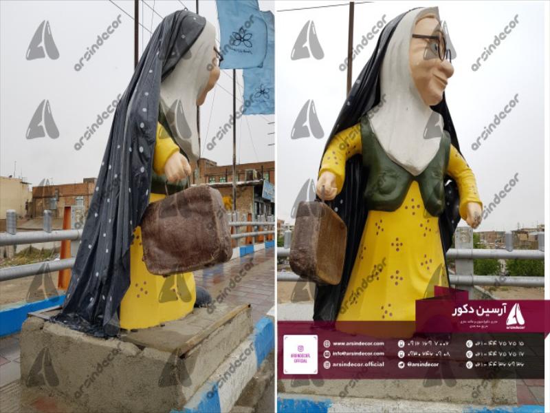 طراحی و ساخت المان شهری پیر زن المان شهری انتزاعی پارک ملت در گروه صنعتی آرسین دکور با استفاده از جدیدترین متدهای روز دنیا((دستگاه CNC شش درجه آزادی)) مدل سازی و قالبگیری شده است. کلیه المان طراحی و ساخت المان شهری پیر زن از متریال فایبرگلاس می باشد. **درگروه صنعتی آرسین دکور هر ایده و طرحی قابل اجرا می باشد**