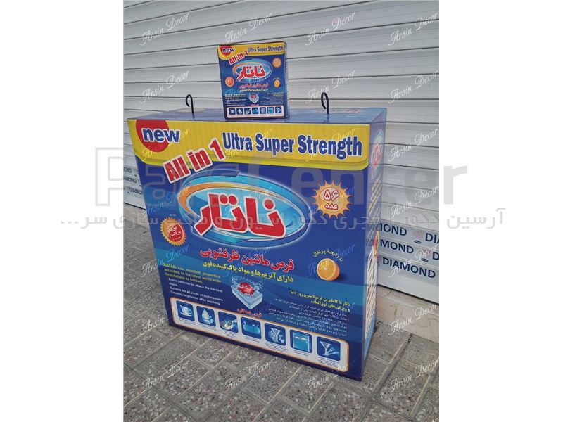ماکت قرص ماشین ظرفشویی در مجموعه آرسین دکور در مدت زمان سه روز کاری به انجام رسیده است. ابعاد ماکت در حدود یک متر می باشد. وزن تقریبی این پروژه نیز در حدود چهار کیلوگرم می باشد. چاپ به کار گرقته شده در این پروژه برای محیطهای فضای باز(نور خورشید، باران و ….) می باشد. از این نوع ماکت می توان در راستای تاثیرگذاری هرچه بیشتر بر روی بیننده و خریدار کالاهی خود استفاده نمود.
