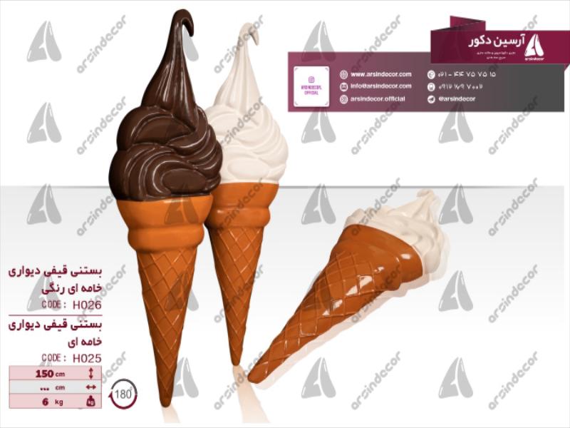 طراحی و ساخت ماکت دیواری بستنی خامه ای در مدت زمان ۱۶ روز کاری انجام گردید. متریال به کار گیری شده در ساخت این سازه فایبر گلاس می باشد که به روش قالب گیری تولید گردیده است. ارتفاع این سازه ۱۵۰ سانتی متر با وزن تقریبی ۶ کیلو گرم می باشد. از سازه می توان به عنوان دکوری در تابلو بستنی فروشی ها استفاده نمود.