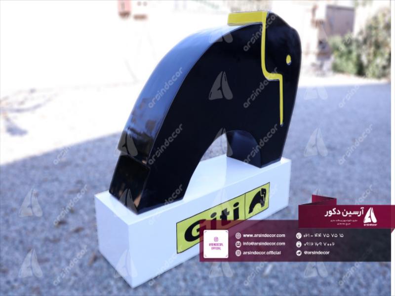 ماکت تبلیغاتی لوگو گیتی در تاریخ اردیبهشت ماه ۱۳۹۶ به مدت ۲۴ روز توسط گروه صنعتی آرسین دکور طراحی و ساخته شده است. این ماکت تبلیغاتی به سفارش کارخانه گیتی ساخته شده است. در این سازه از متریال فایبرگلاس شش لایه استفاده شده است. رنگ به کار گرفته شده صنعتی و خودرویی و مناسب جهت استفاده در فضای باز و سرپوشیده و مقاوم در برابر اشعه UV و رطوبت می باشد. تمام مراحل مدل سازی و قالبگیری این محصول توسط دستگاه های CNC تمام اتوماتیک با بالاترین دقت انجام گرفته است.