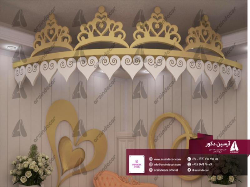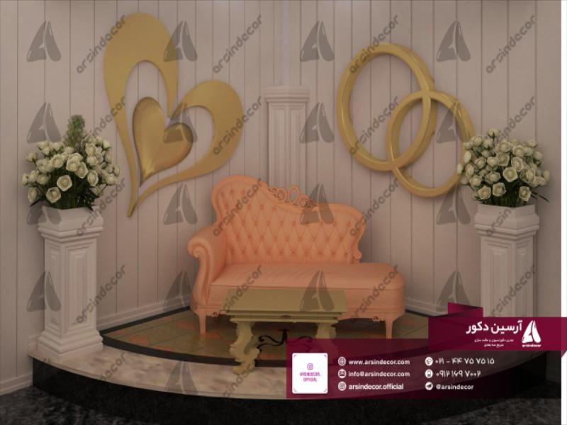 دکور جایگاه عروس داماد در سال ۱۳۹۳ طراحی و تولید گردید. متریال به کار گرفته در این دکور یونولیت ویژه ماکت سازی می باشد که توسط دستگاه سی ان سی مدل سازی شده است. ابعاد حدودی دکور جایگاه عروس داماد ۳۰۰ در ۱۰۰ سانتی متر می باشد.
