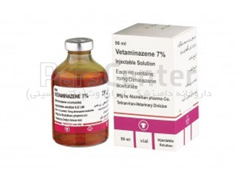 داروخانه دامپزشکی ایران وت عرضه کننده داروی وتامینازن۷% (دیمینازن استوریت) ساخت شرکت ابوریحان وتامینازن جهت درمان انواع گونه های بابزیا و تریپانوزوما در تمام گونه های حیوانات استفاده میشود. جهت سفارش داروها و اطلاع از تخفیفات به کانال تلگرام و اینستاگرام ما بپیوندید.