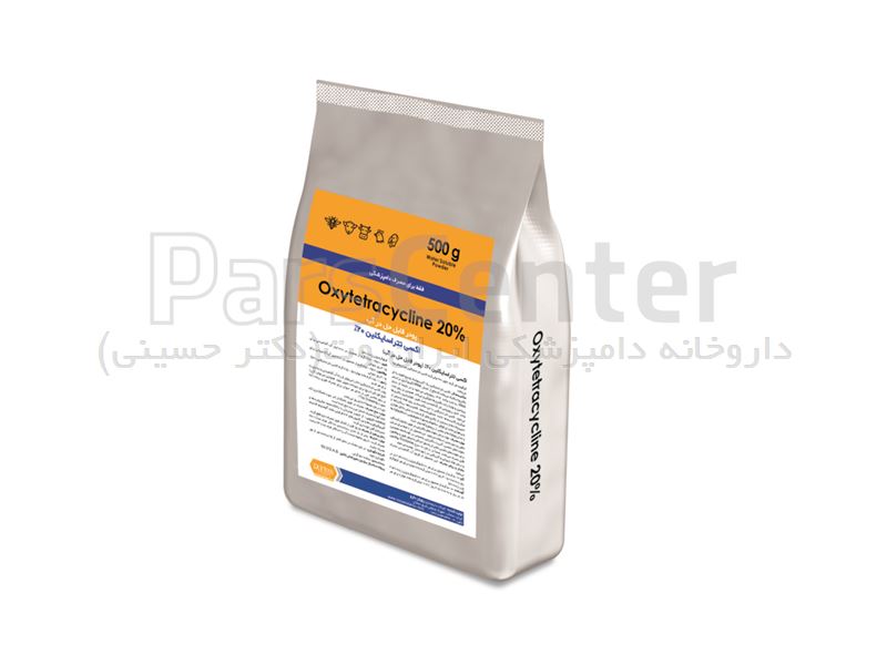 پودر اکسی تتراسایکلین ۲۰ % را میتوان از راه آب آشامیدنی یا به صورت مایع خوراکی (درنچ) برای حیوانات تجویز نمود. همچنین میتوان آن را بر روی مقادیر کمی از غذای هر حیوان برای مصرف فوری ریخت ( به صورتTop Dressing) . زمان پرهیز از مصرف: