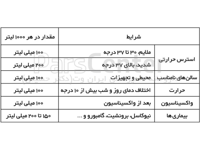 پوستین - سی ®یک ماده مغذی است که نیازمندیهای روزانه طیور به ویتامین C را فراهم مینماید. علاوه بر آن پوستین - سی® مقاومت طیور را در برابر عوامل استرسزا مانند گرمای شدید، تهویه نامطلوب، واکسیناسیون و بیماریها افزایش داده و در نهایت بر روی تولید و سلامت گله اثرات قابلتوجهی را در پی خواهد داشت.