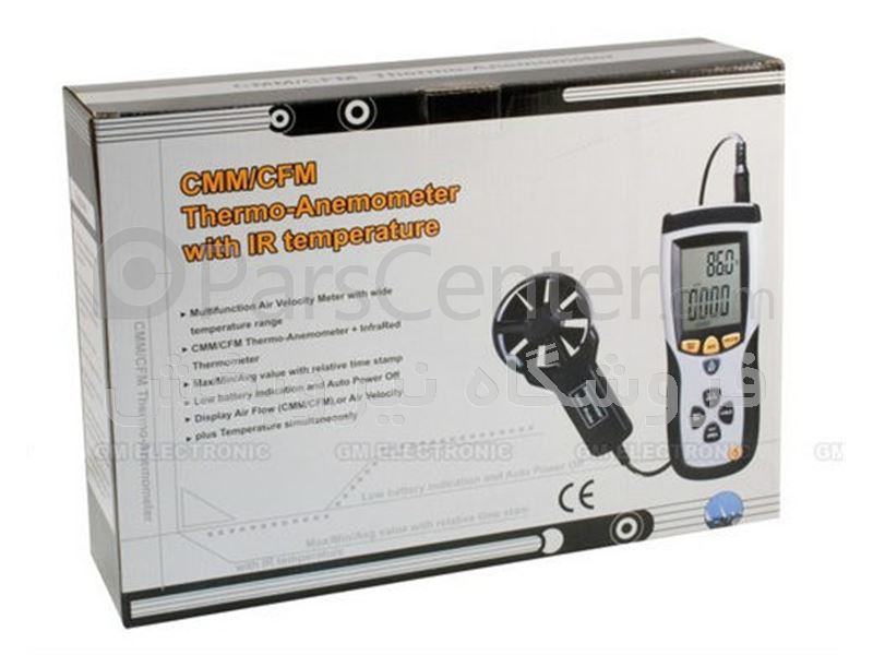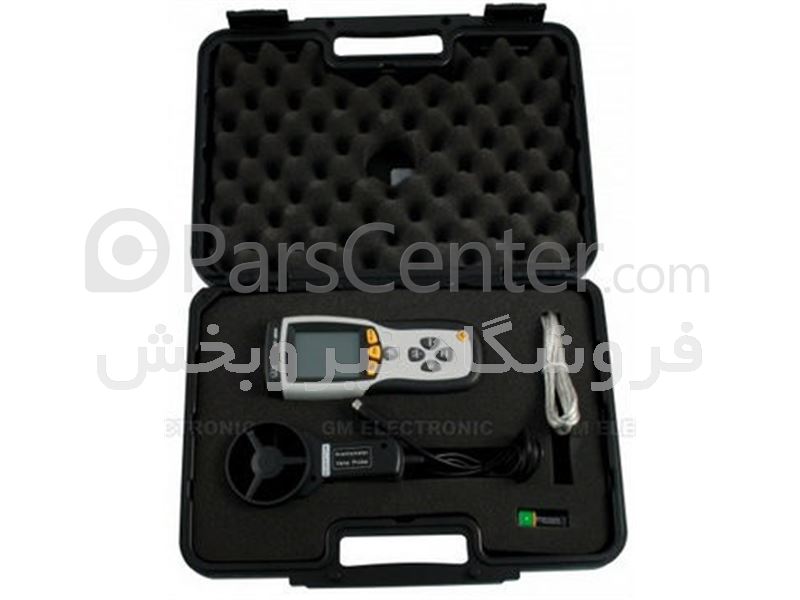 بادسنج پروانهایی با قابلیت سنجش مقدار حجم عبوری هوا (فلو) و دارای ترمومتر لیزری همراه با قابلیت اندازه گیری (500+.....50-) به همراه کیف حمل و کابل اتصال به کامپیوتر و نرم افزار جهت رسم گراف و منحنی عملیات حرارت و سرعت باد